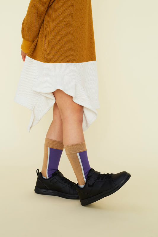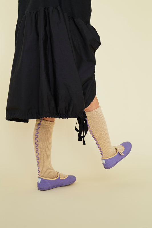 mellow ribbed high socks/ ミルキーホワイト×オーキッドピンク